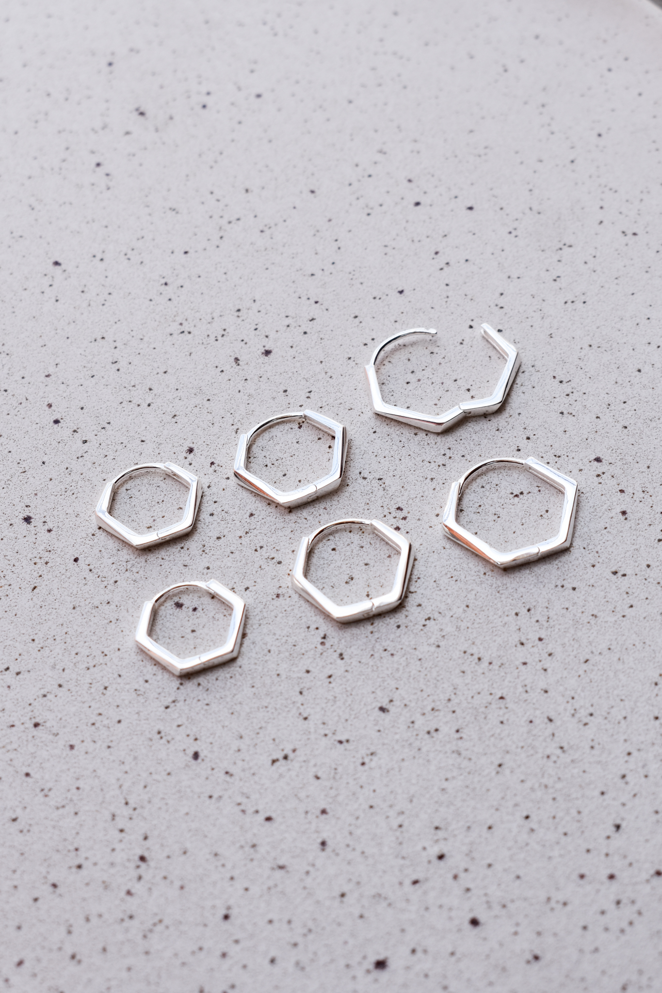 Brinco de argola com formato hexágono. Fechamento em click.