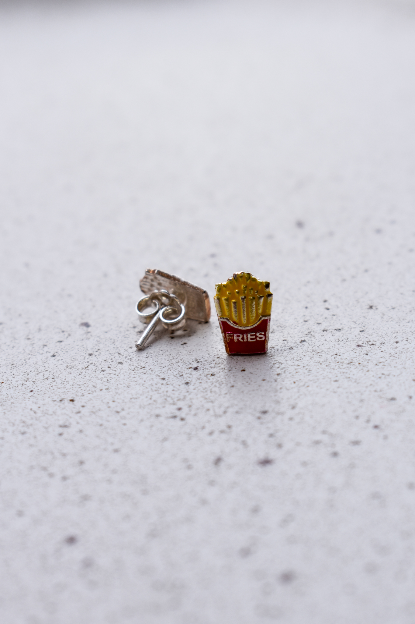 Brinco batata frita resinada. Fechamento em tarraxa.