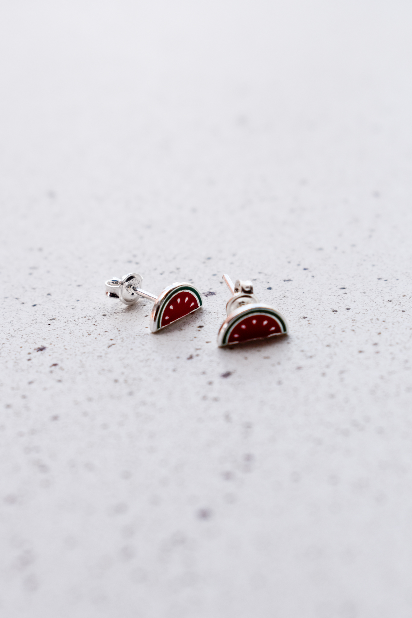 Brinco melancia resinada. Fechamento em tarraxa.