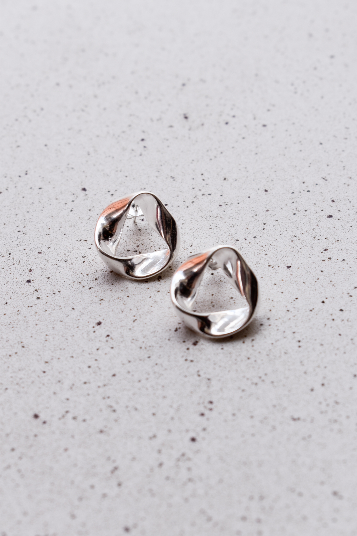 Brinco triângulo orgânico torcido. Fechamento em tarraxa.
